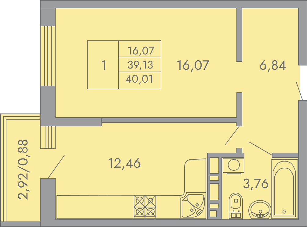 1-комн. планировка 40.01 м² в ЖК «Рокада»