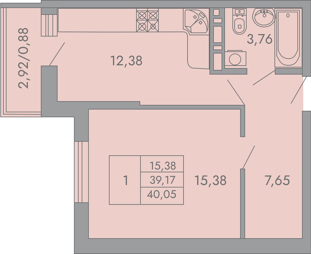 1-комн. 40.05 м²
