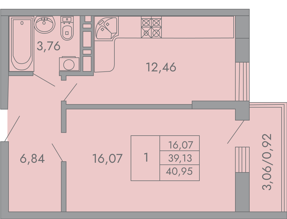 1-комн. 40.95 м²