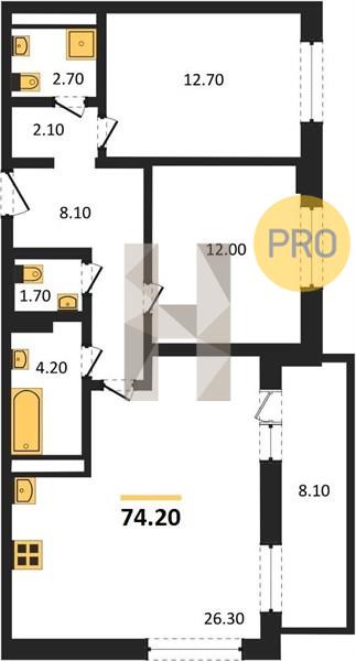2-комн. 74.20 м²