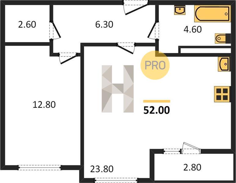1-комн. 52.00 м²