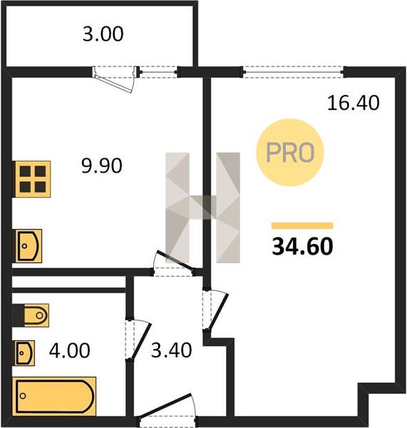 1-комн. квартира 34.60 м² в Neo-квартал «Красная Площадь»