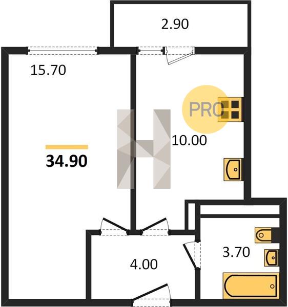 1-комн. 34.90 м²