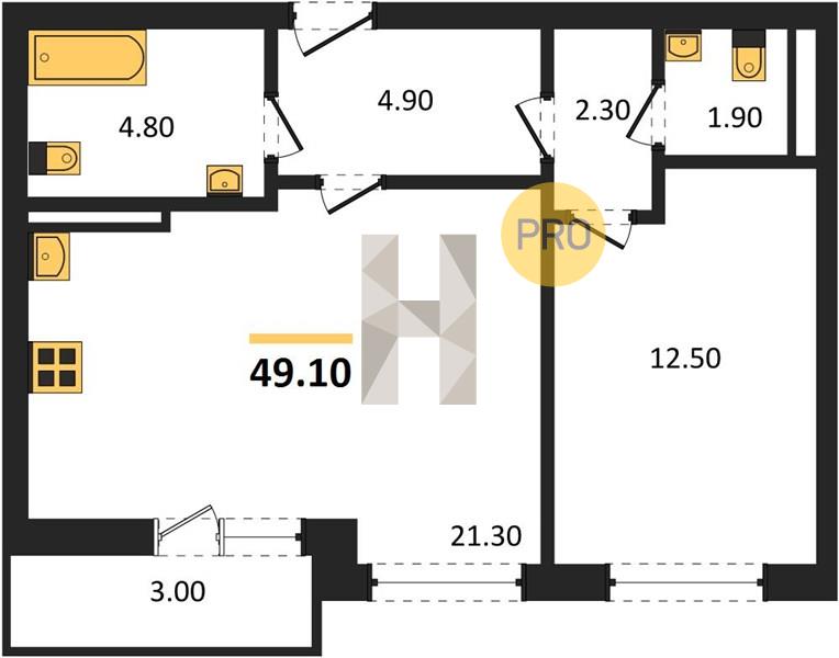 1-комн. квартира 49.10 м² в Neo-квартал «Красная Площадь»