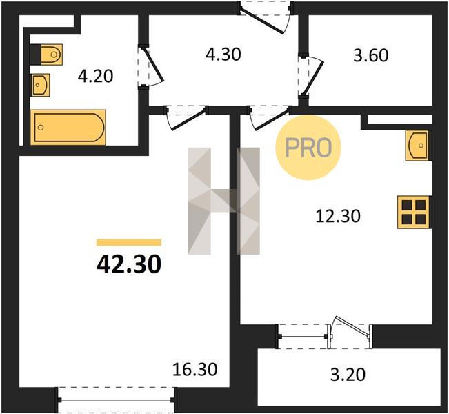 1-комн. 42.00 м²