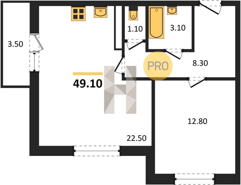 1-комн. 49.60 м²