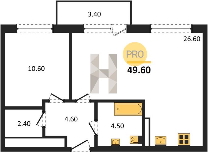 1-комн. 49.60 м²