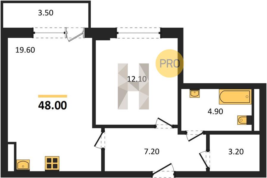 1-комн. 48.00 м²