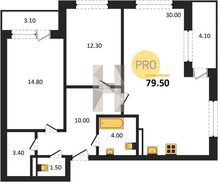 2-комн. квартира 79.30 м² в Neo-квартал «Красная Площадь»