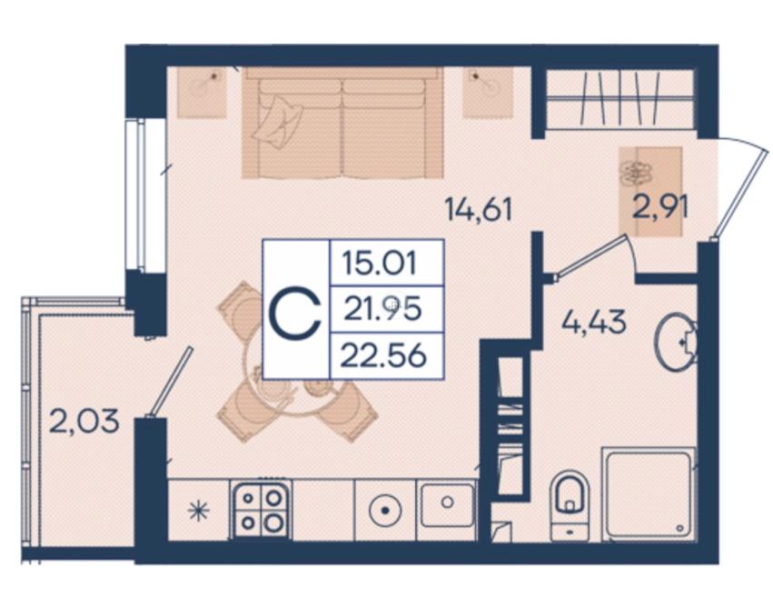 0-комн. планировка 22.56 м² в ЖК «Дом 101»