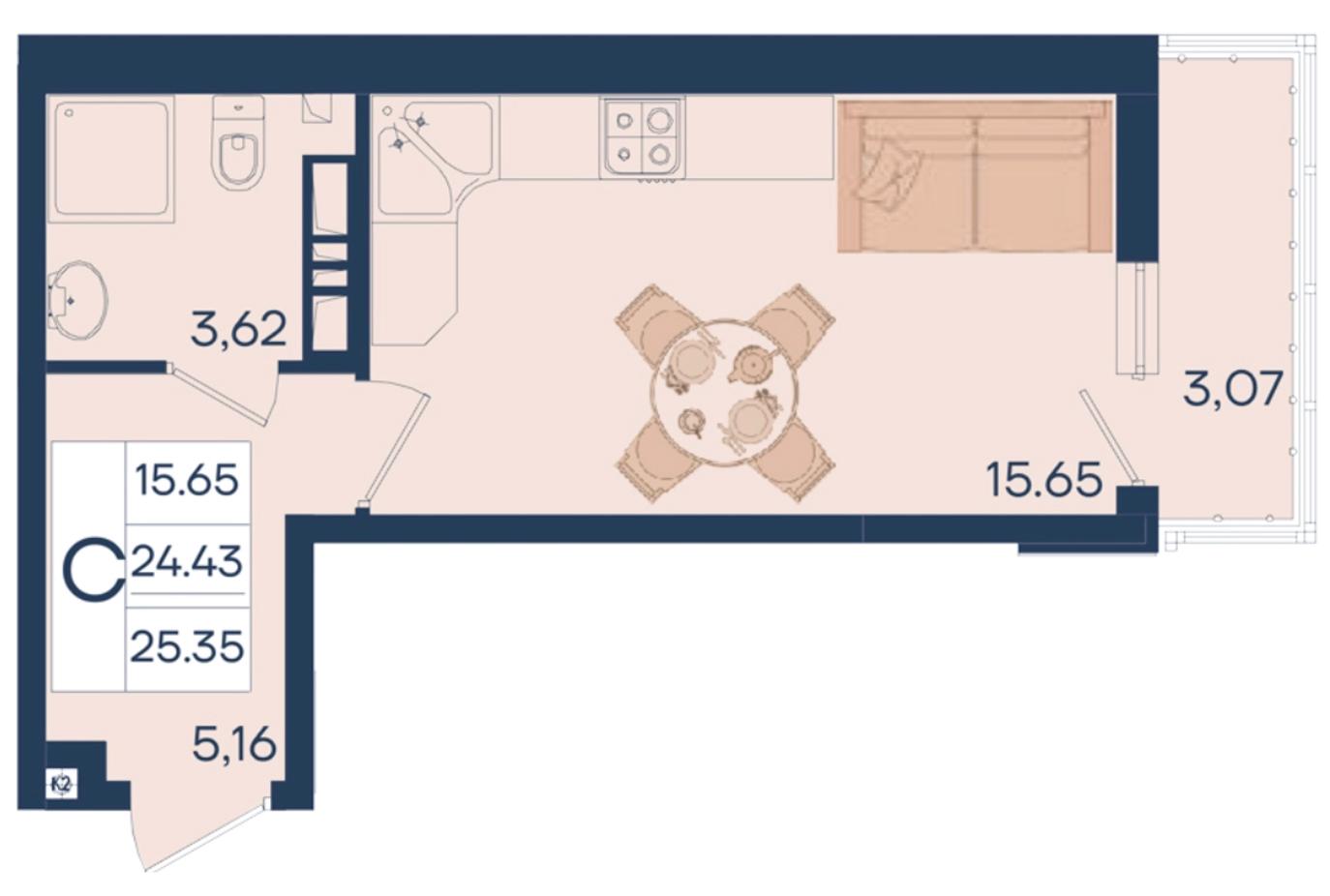 0-комн. планировка 25.35 м² в ЖК «Дом 101»