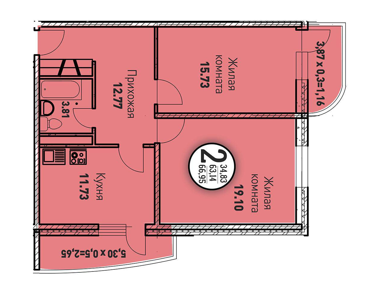 2-комн. 67.00 м²