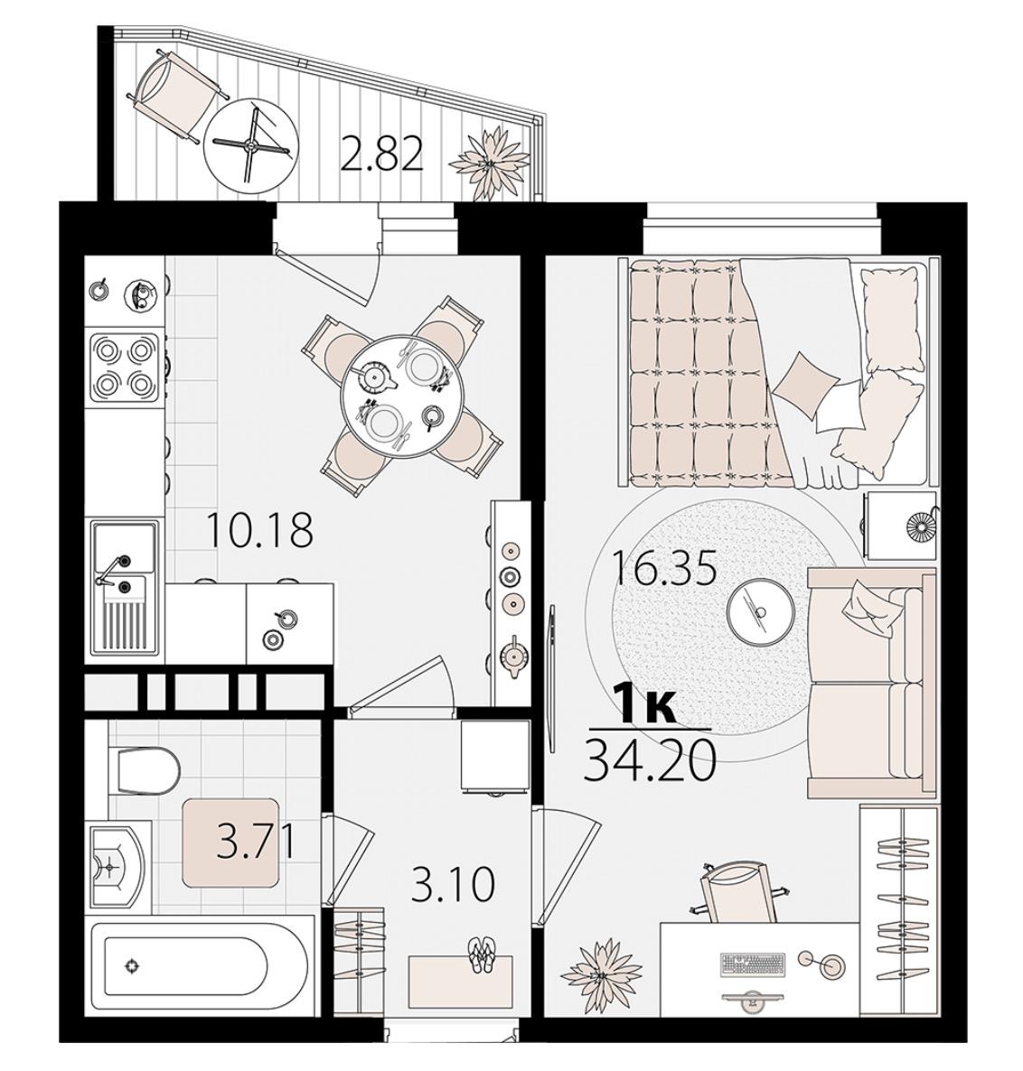 1-комн. 34.20 м²