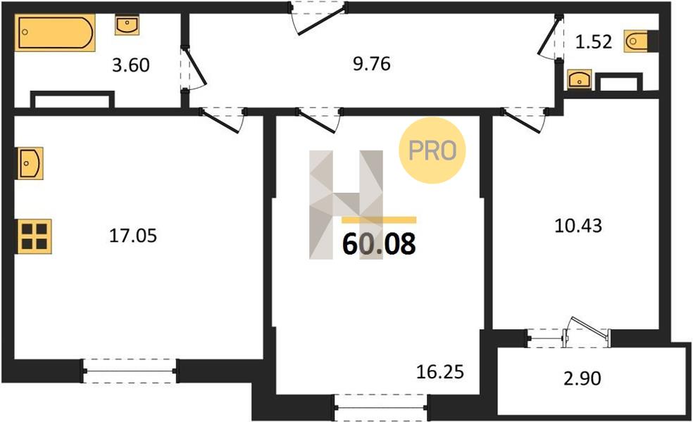 2-комн. квартира 61.35 м² в ЖК «Друг 2»