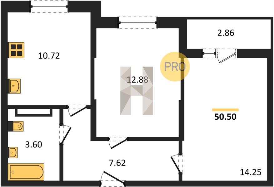 2-комн. квартира 50.50 м² в ЖК «Друг 3»