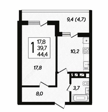 1-комн. планировка 44.40 м² в ЖК «Fresh»
