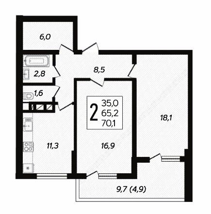 2-комн. планировка 70.10 м² в ЖК «Fresh»
