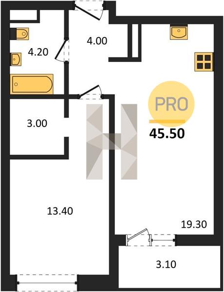 1-комн. квартира 45.50 м² в ЖК «Эрмитаж»