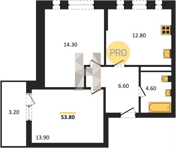 2-комн. квартира 53.80 м² в ЖК «Эрмитаж»