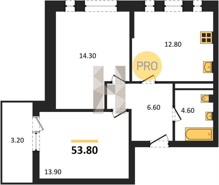 2-комн. квартира 53.80 м² в ЖК «Эрмитаж»