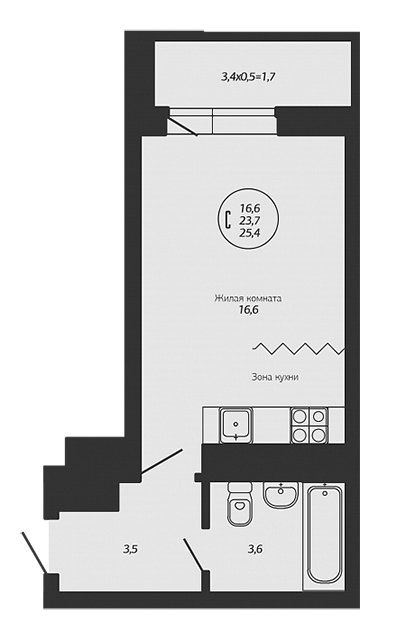 1-комн. планировка 25.40 м² в ЖК «Мелодия»