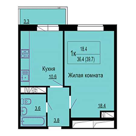1-комн. планировка 39.70 м² в ЖК «Мелодия»