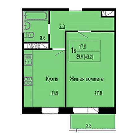 1-комн. планировка 43.20 м² в ЖК «Мелодия»