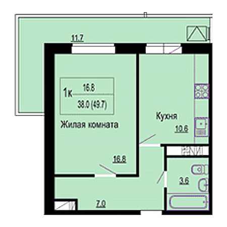 1-комн. планировка 49.70 м² в ЖК «Мелодия»