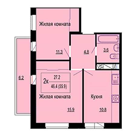 2-комн. 55.90 м²