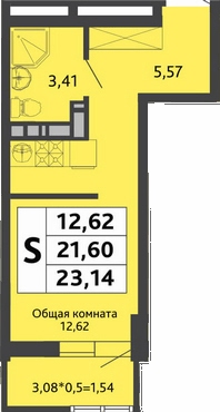 1-комн. планировка 23.14 м² в ЖК «Мозаика»
