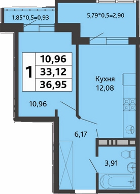 1-комн. планировка 36.95 м² в ЖК «Мозаика»