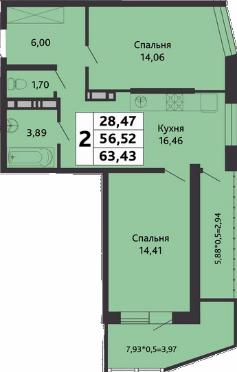 2-комн. 63.43 м²