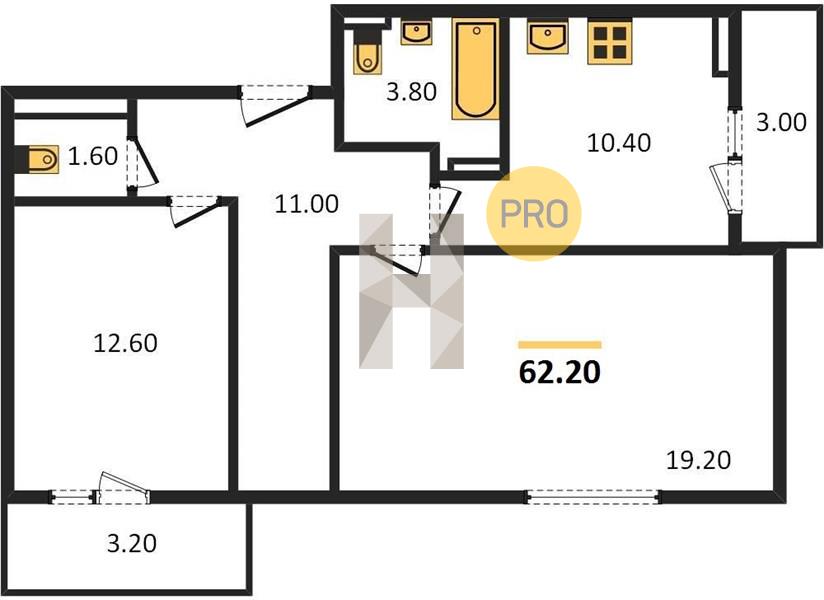 2-комн. квартира 62.20 м² в ЖК «Парк у дома»