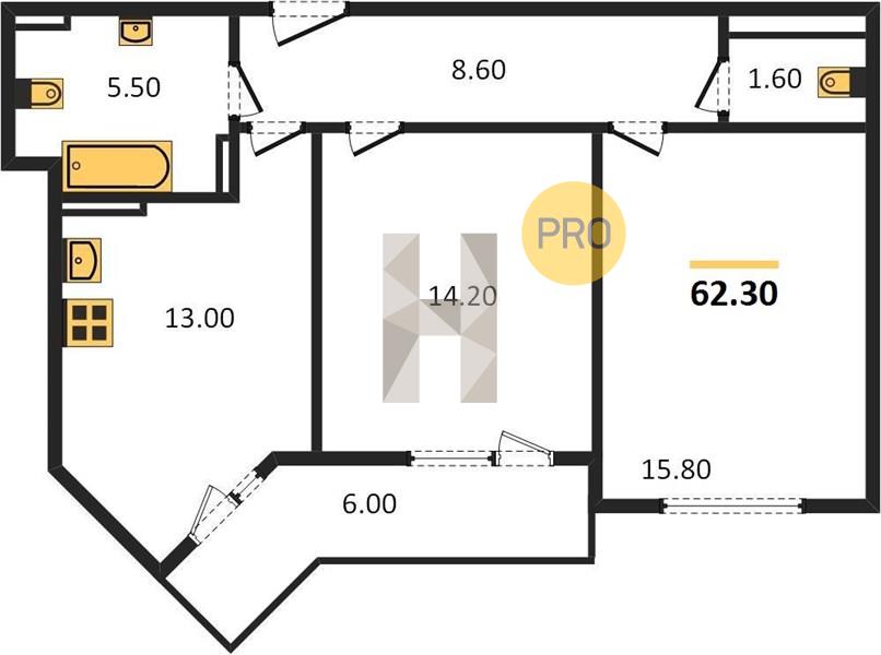 2-комн. квартира 62.30 м² в ЖК «Парк у дома»