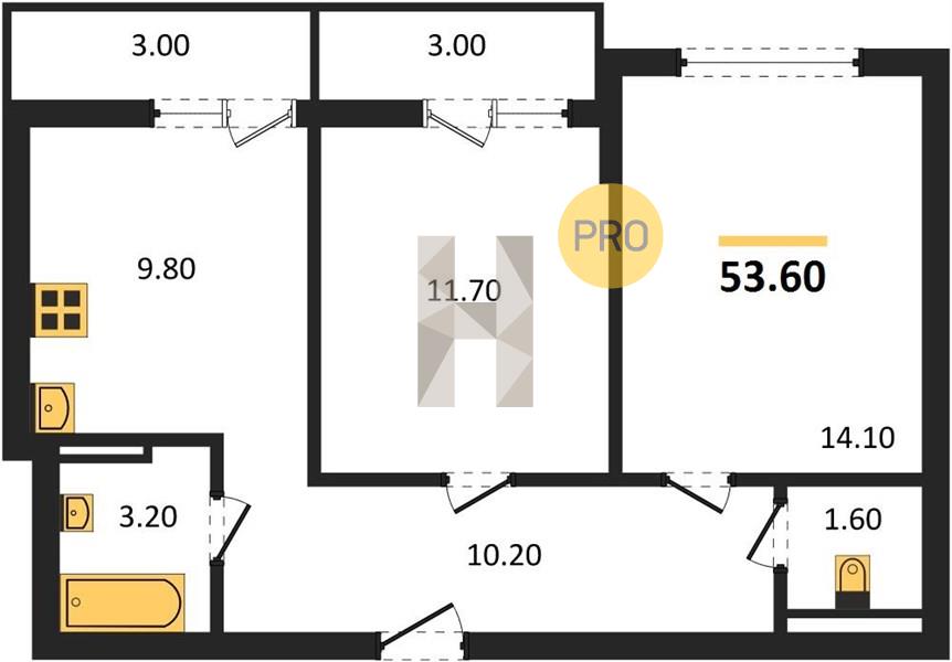 2-комн. квартира 53.60 м² в ЖК «Парк у дома»