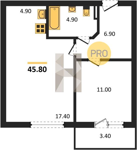 1-комн. 45.80 м²