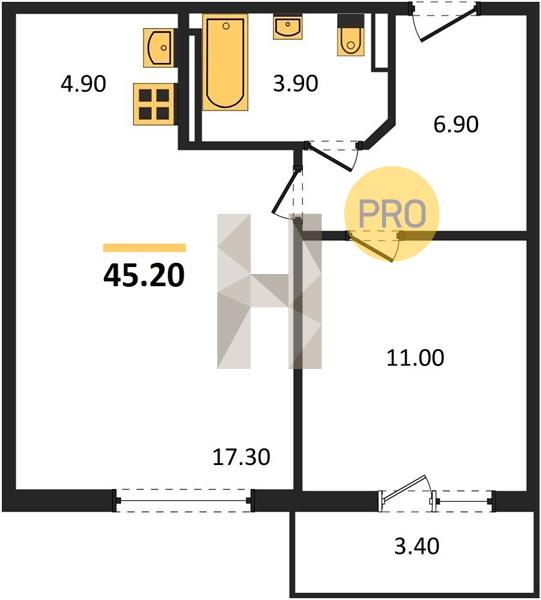 1-комн. 45.20 м²