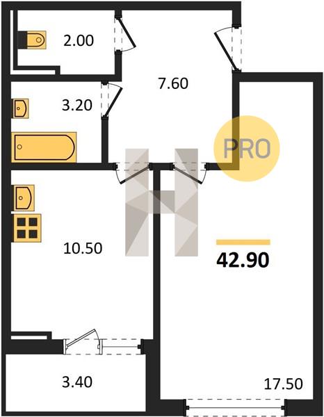1-комн. 42.90 м²