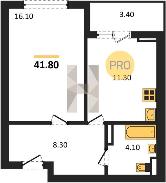 1-комн. квартира 41.80 м² в ЖК «Парк у дома»