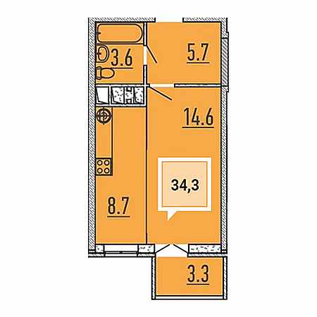 1-комн. планировка 34.30 м² в ЖК «Перемена»