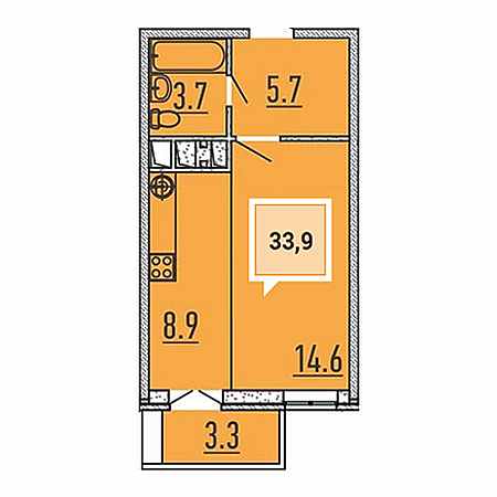 1-комн. планировка 33.90 м² в ЖК «Перемена»