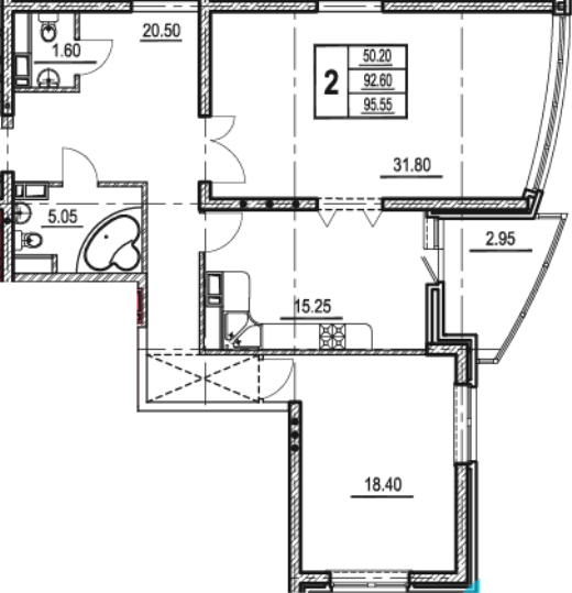 2-комн. 95.55 м²