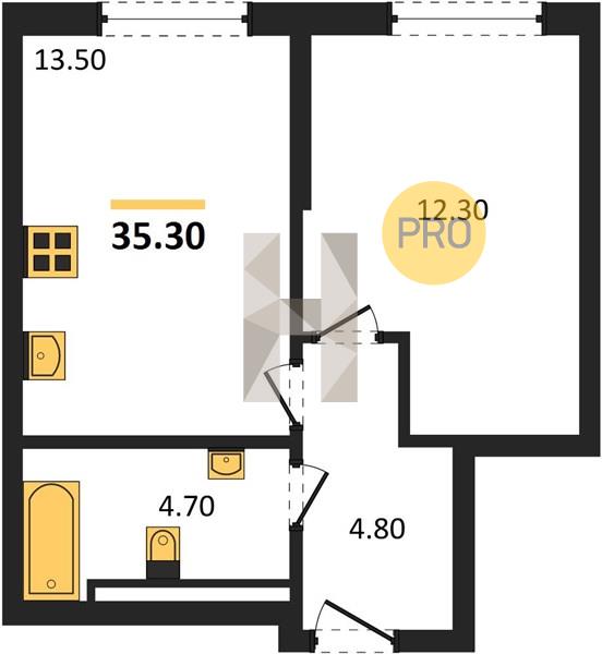 1-комн. квартира 35.30 м² в ЖК «Самолет 7»