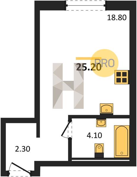 0-комн. квартира 25.20 м² в ЖК «Самолет 7»