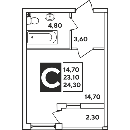1-комн. планировка 24.30 м² в ЖК «Самолет»