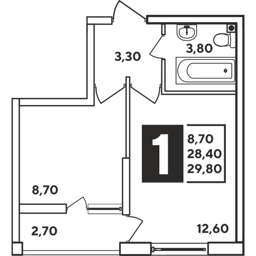 1-комн. планировка 29.80 м² в ЖК «Самолет»