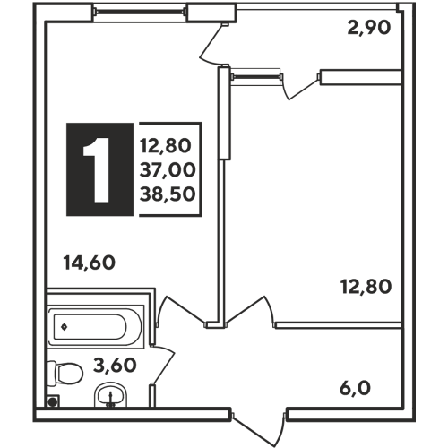 1-комн. планировка 38.50 м² в ЖК «Самолет»