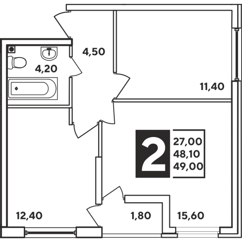 2-комн. 49.00 м²