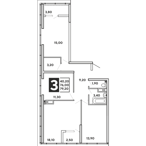 3-комн. планировка 79.20 м² в ЖК «Самолет»