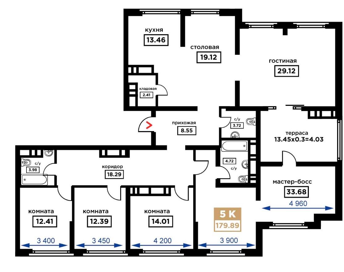 5-комн. планировка 179.89 м² в ЖК «Сердце»
